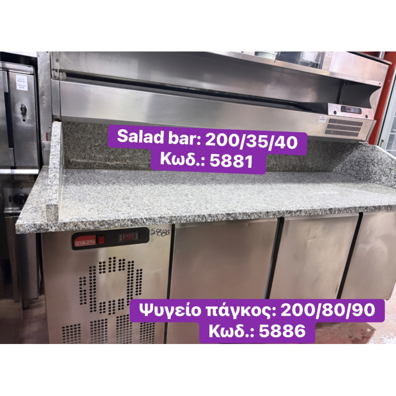 Μεταχειρισμένο ψυγείο πάγκος για pizza, με 3 πόρτες, μάρμαρο & salad bar‼️